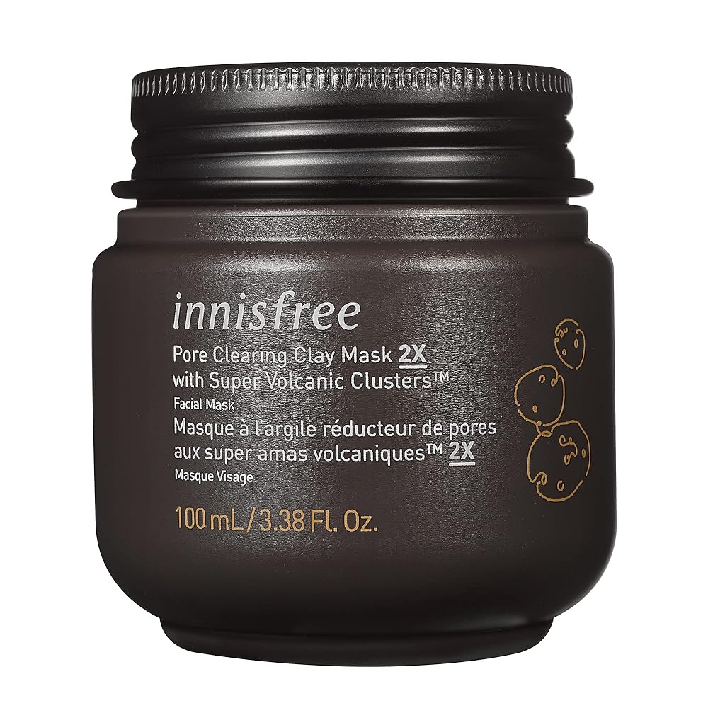 이니스프리 슈퍼 화산송이 모공 클레이 마스크는 10가지 효능을 가진 인기 있는 한국 쿨링 워시오프 마스크입니다. 제주 화산송이, AHA(젖산), 호두껍질 가루를 함유하여 피지를 집중적으로 흡수하고 각질을 제거하며 모공을 축소해 줍니다. 지성부터 복합성 피부에 적합합니다.